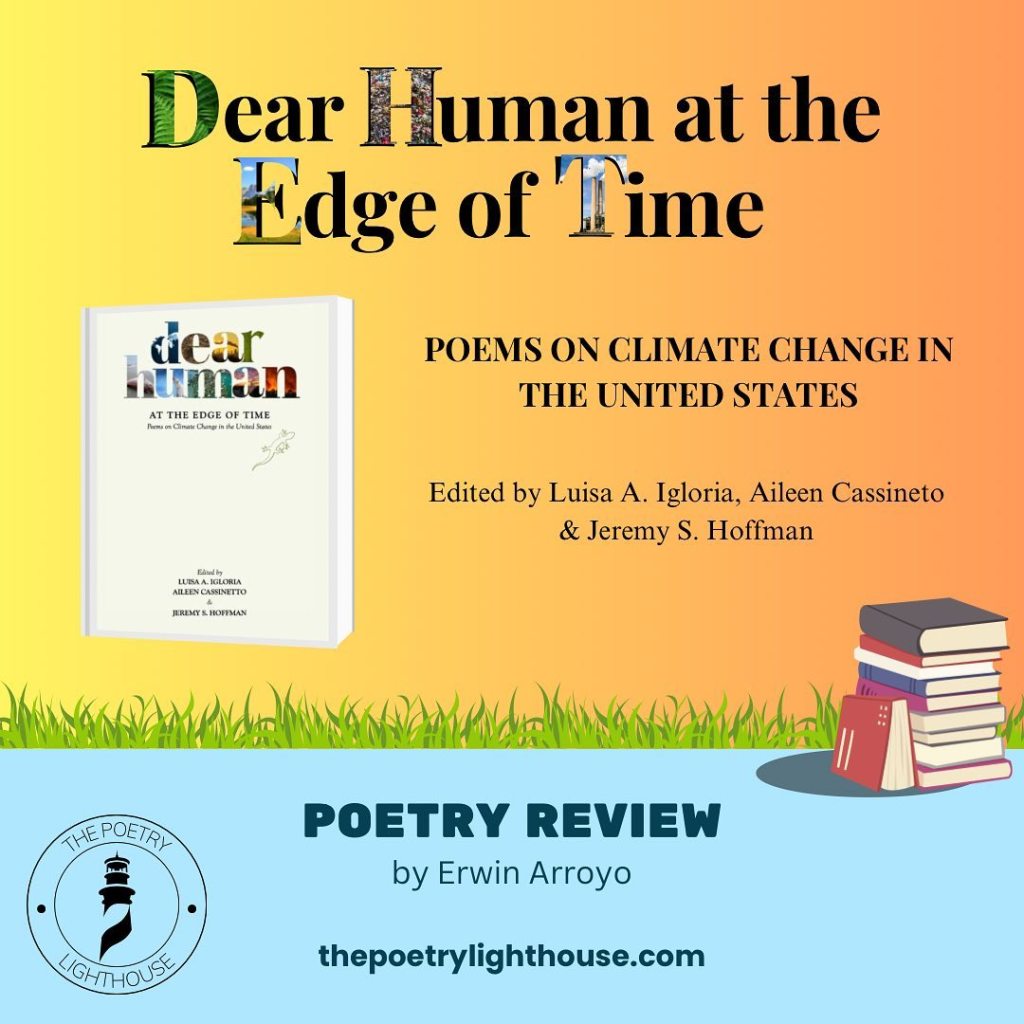Thank you so much to Erwin Arroyo, Paris-based poet and founding editor of The Poetry Lighthouse, for his careful reading of our anthology, and for creating these lovely promotional materials! Dear Human at the Edge of Time is available to pre-order in Europe from Waterstones.