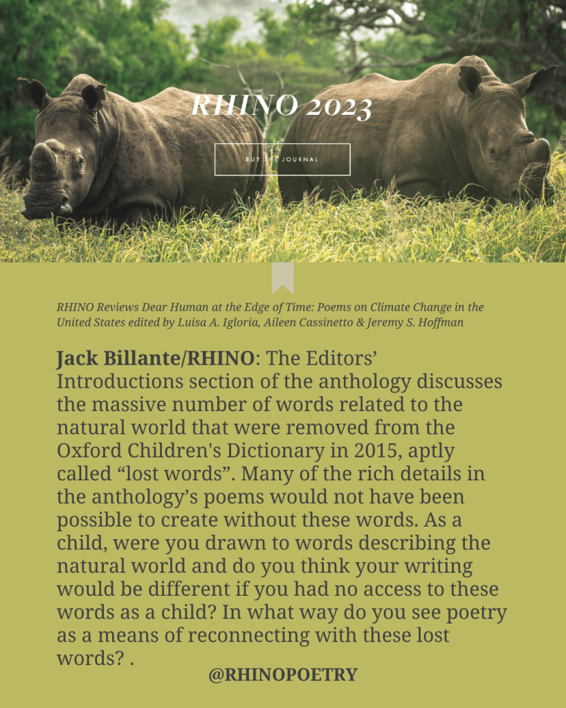 Dear Human at the Edge of Time is featured in RHINO Volume 6 No. 9!
