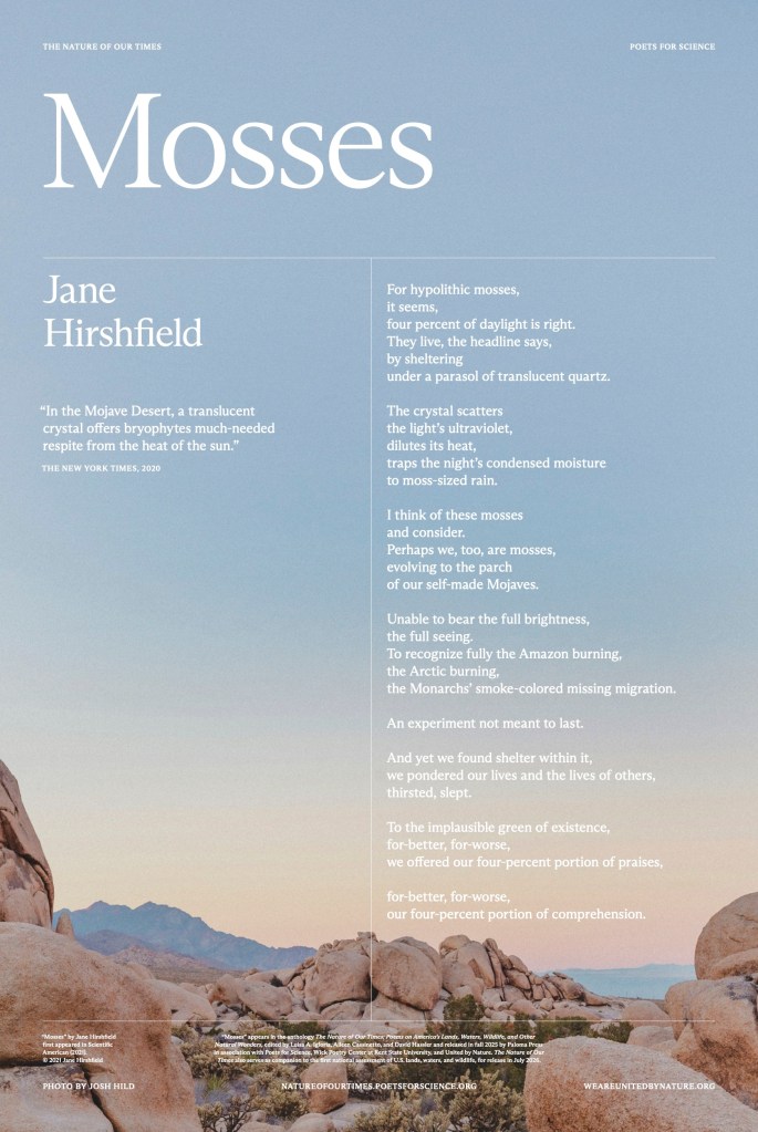 At the Center for Nature and Health’s Annual Symposium, posters from The Nature of Our Times created a space for stillness and encouraged attendees to slow down and engage with each poem, as noted in this report from the Center for Nature and Health: