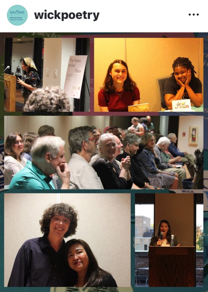 Huge thanks to David Hassler and Wick Poetry Center for organizing and hosting all the gatherings and launch events. Thank you so much to poets Barbara Sabol, Carrie George, Charlie Malone, Gabriela Igloria, Jeff Gundy, Jennifer Browne, Jessica Jones, Laura Grace Weldon, Neil Carpathios, Paula J. Lambert, Pauline Thornton, Ray McNiece, and RC Wilson, Cleveland Public Library, Kent State University, Each & Every, and the Kent community for their incredible support. We truly felt the love, Ohio!
